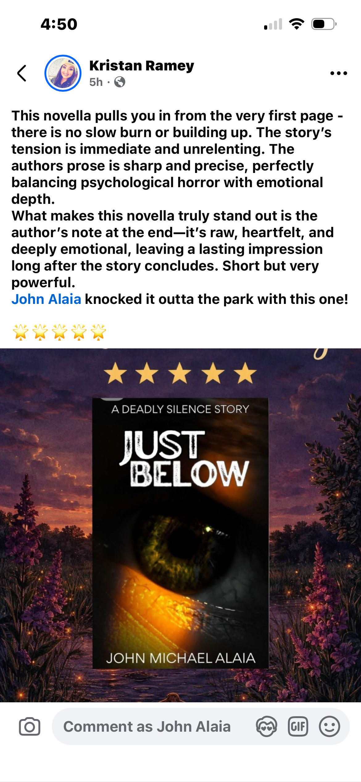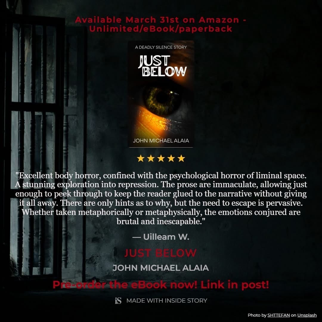 My novelette “Just Below” launched on March 31st, and has had a great reception.